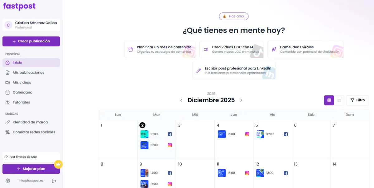 FastPost es un SaaS que permite a empresas y agencias crear contenido profesional para redes sociales en minutos gracias a la IA.